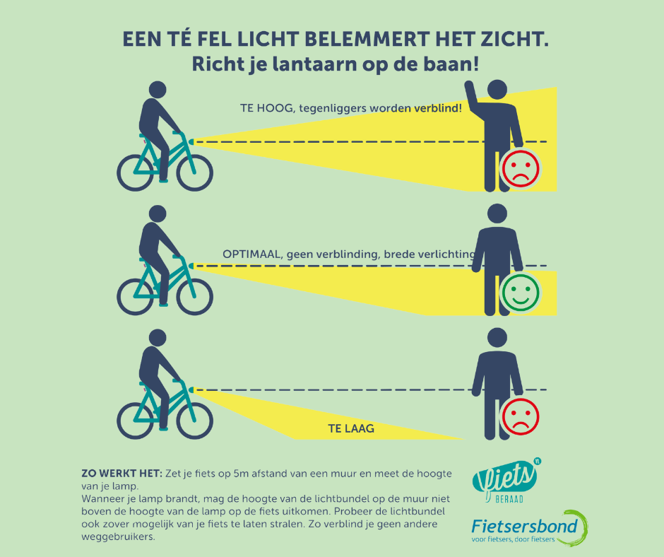 Kortere dagen, winteruur en fietsen in het donker. Ze vragen om een goed afgesteld voorlicht. Maar hoe richt je je fietslicht goed af?